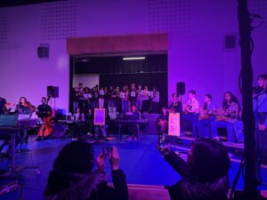 We did it again. In two short months (15 classes) my students and I chose a concert theme, songs, instruments, and created arrangements and a concert plan. From “Fireworks” to “In the End” the audience sang along and we jammed. First time in my career I’ve led from my spot in the class bands, facing out towards our supportive audience. Added bonus-and reason for fall concert date-was our use of Dholaks (Indian drums) on loan from the TDSB Music Department.