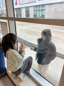 Our Music room window is a popular place for kids to wave hello and communicate with one another. I love being a part of this student music community.